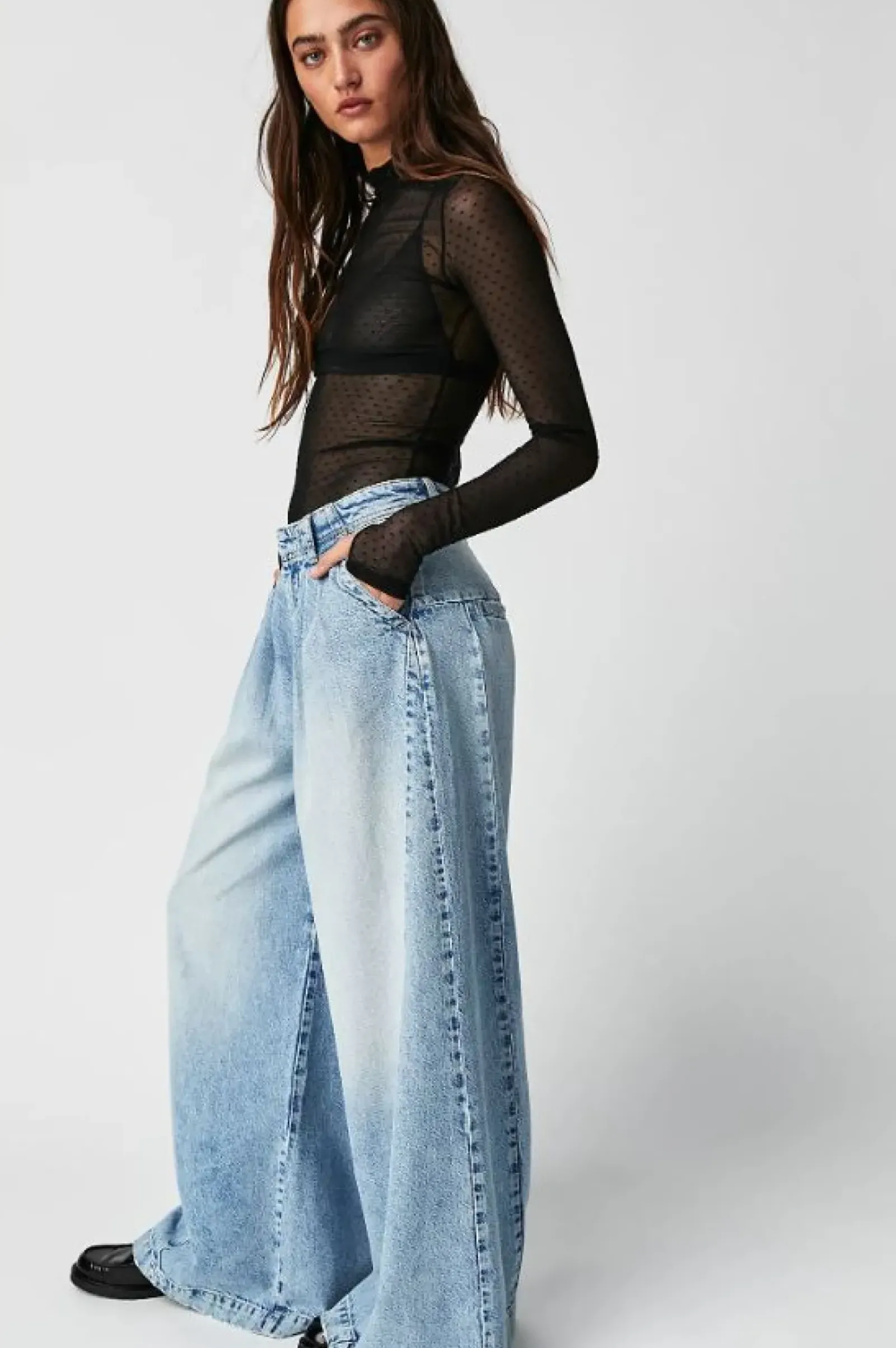 Fit:Mid-rise, exaggerated wide-leg silhouette
