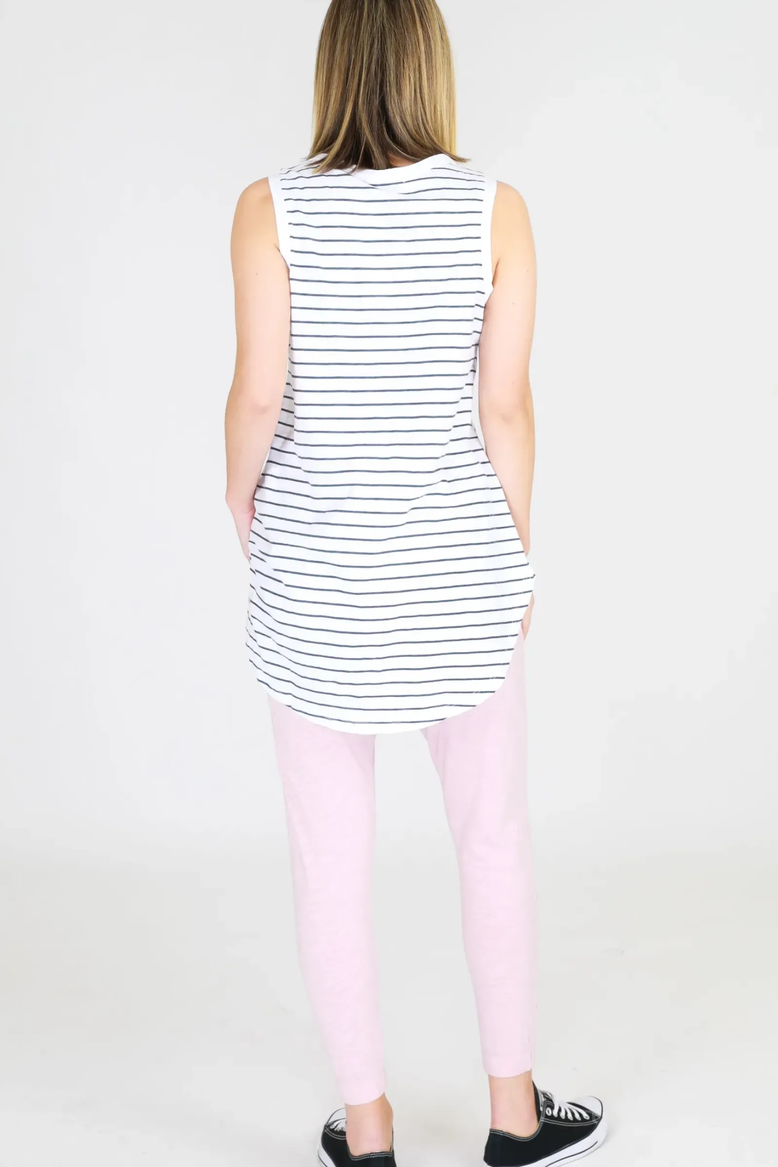 The 3rd Story Madison Tank features a simple, round neckline and a hi-lo hem with flattering scoop. This tank is 100% cotton, making it comfy and breathable and perfect for layering.