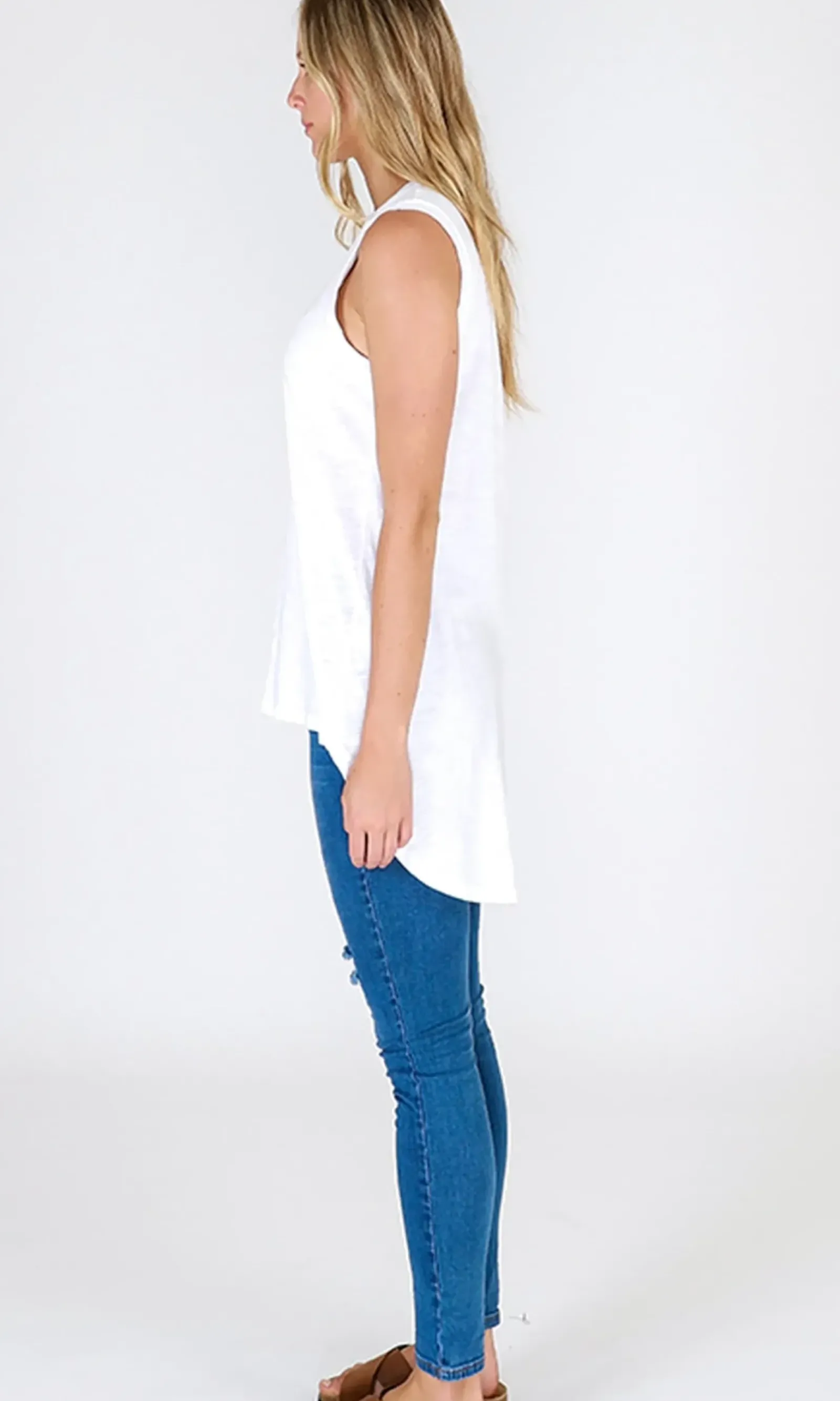 The 3rd Story Madison Tank features a simple, round neckline and a hi-lo hem with flattering scoop. This tank is 100% cotton, making it comfy and breathable and perfect for layering.