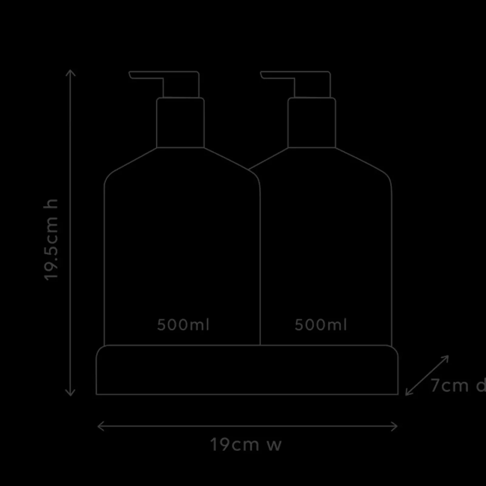 The Duo includes a 500ml hand&body wash, 500ml hand&body lotion and a matching tray.