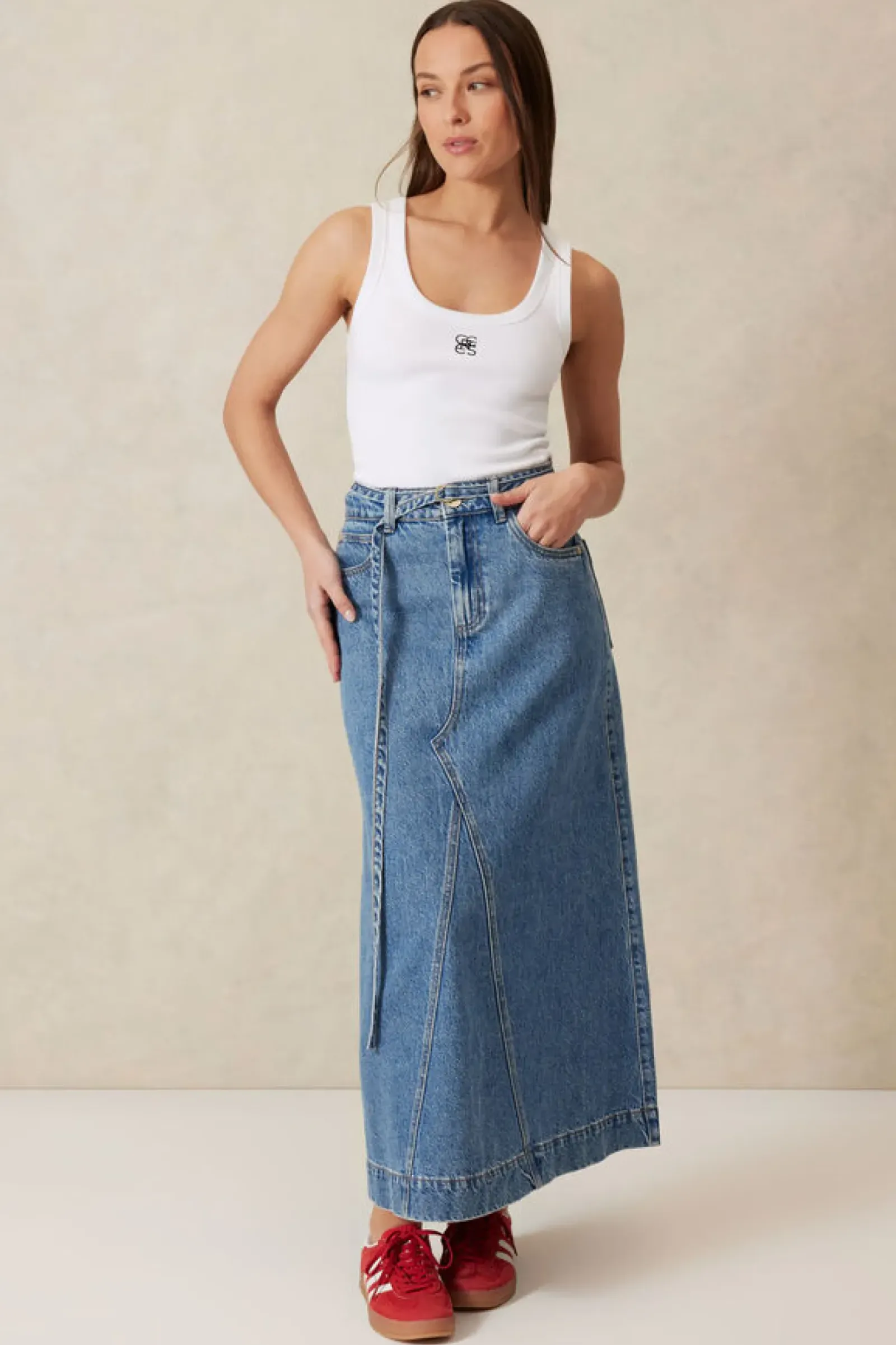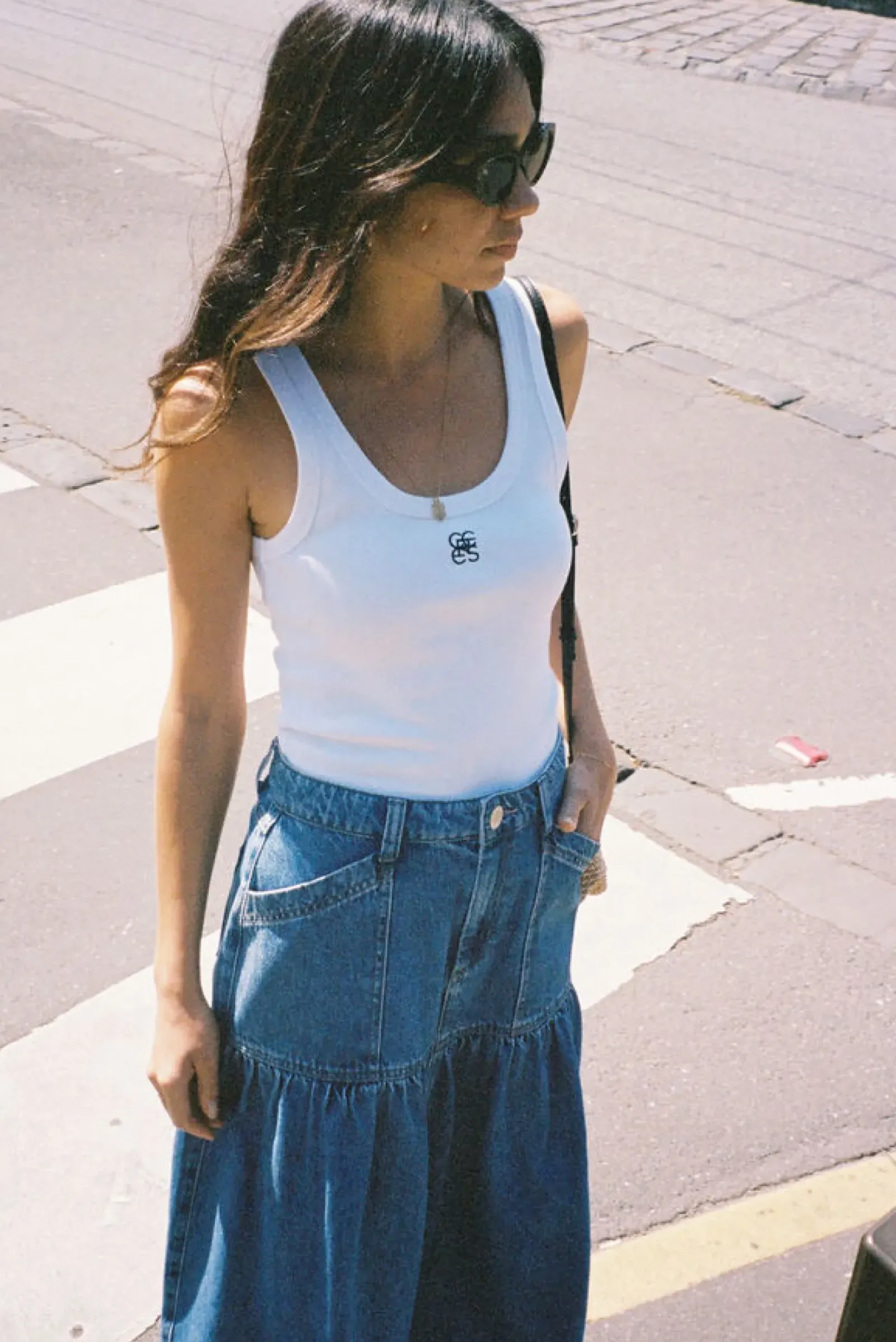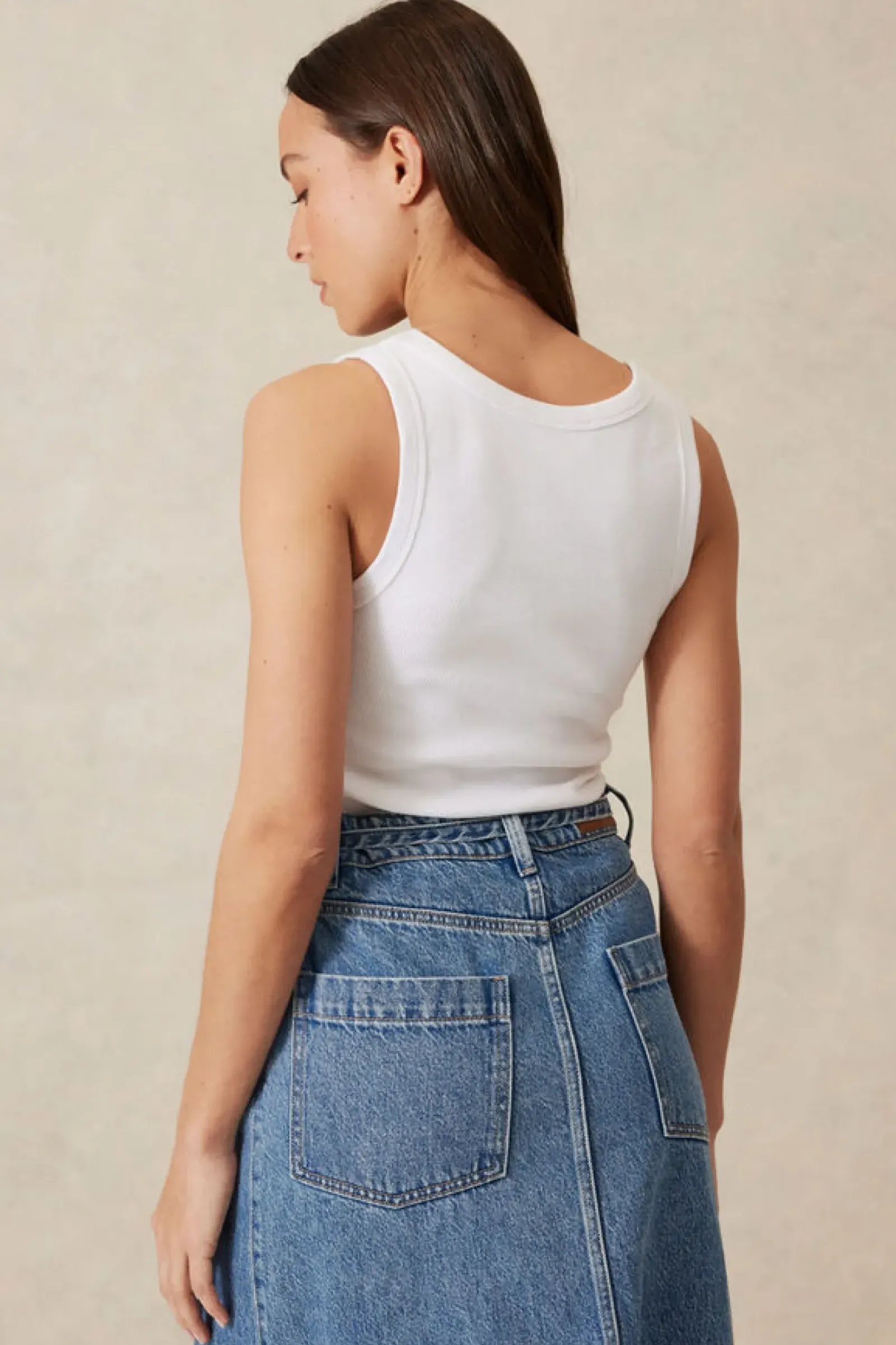 Ceres Life Contour Rib Scoop Tank – White/Black Monogram Embroidery Fashion