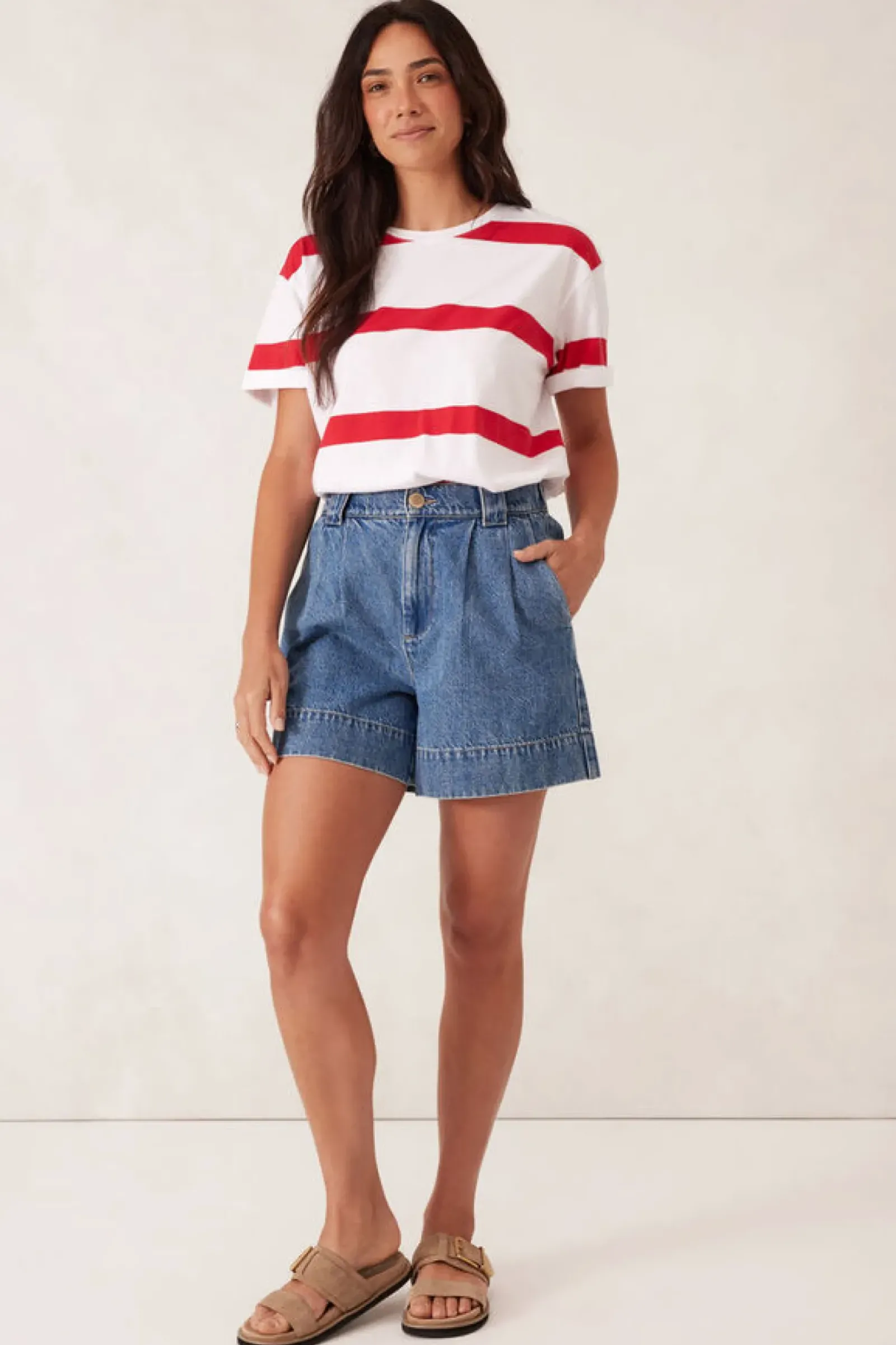 Ceres Life Slouchy Split Hem Tee – White/Heritage Red Bold Stripe Sale