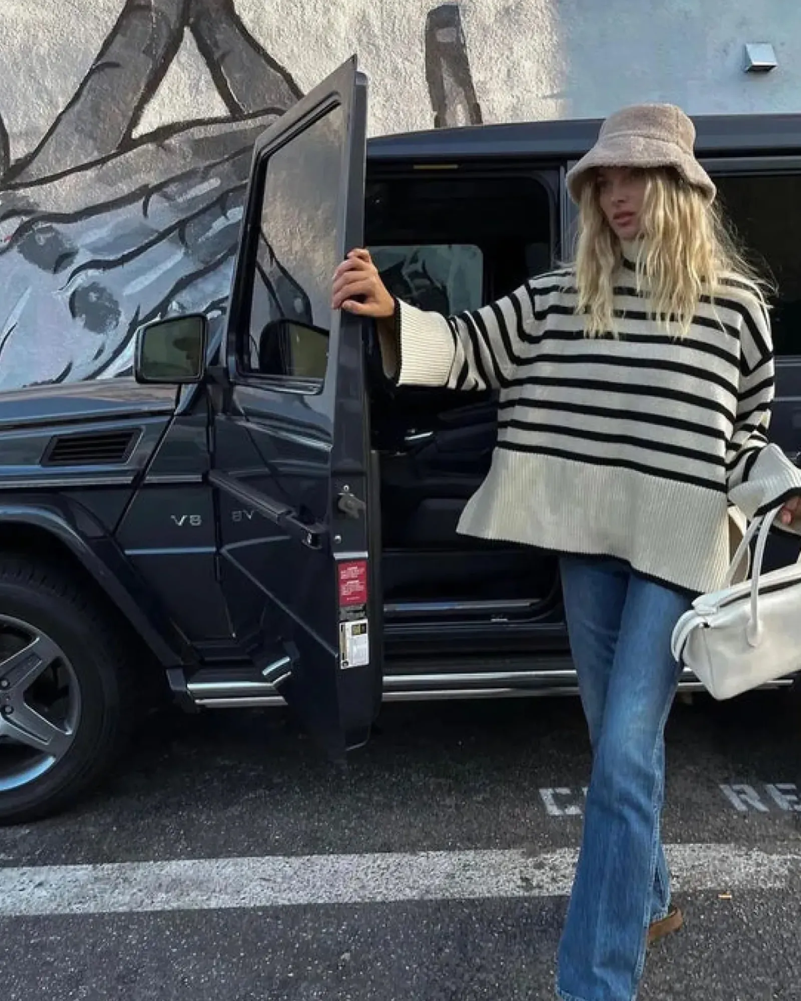 Keep warm with a French classic piece: the stripe knitwear jumper. The feel is so soft, it will become your favourite pi…