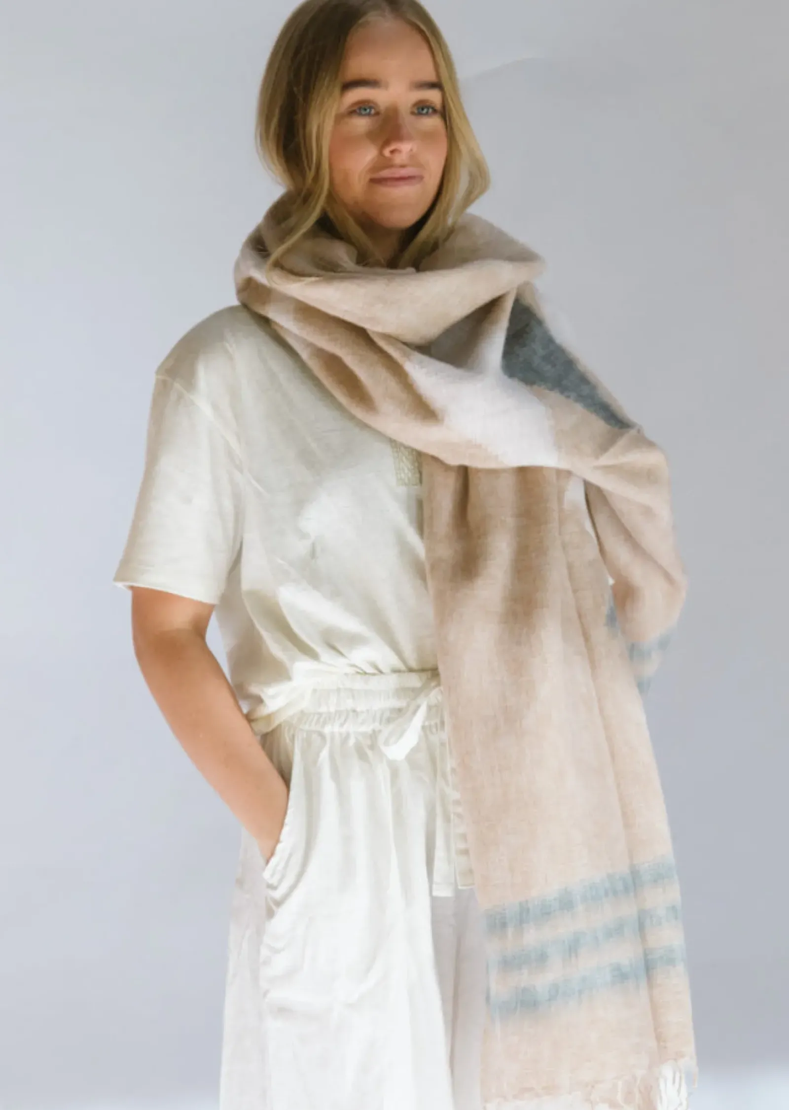 Our shawl/wrap/scarf is a versatile wardrobe must-have. Easily styled up or down, you’ll be reaching for this cosy piece time and time again throughout the cooler months.