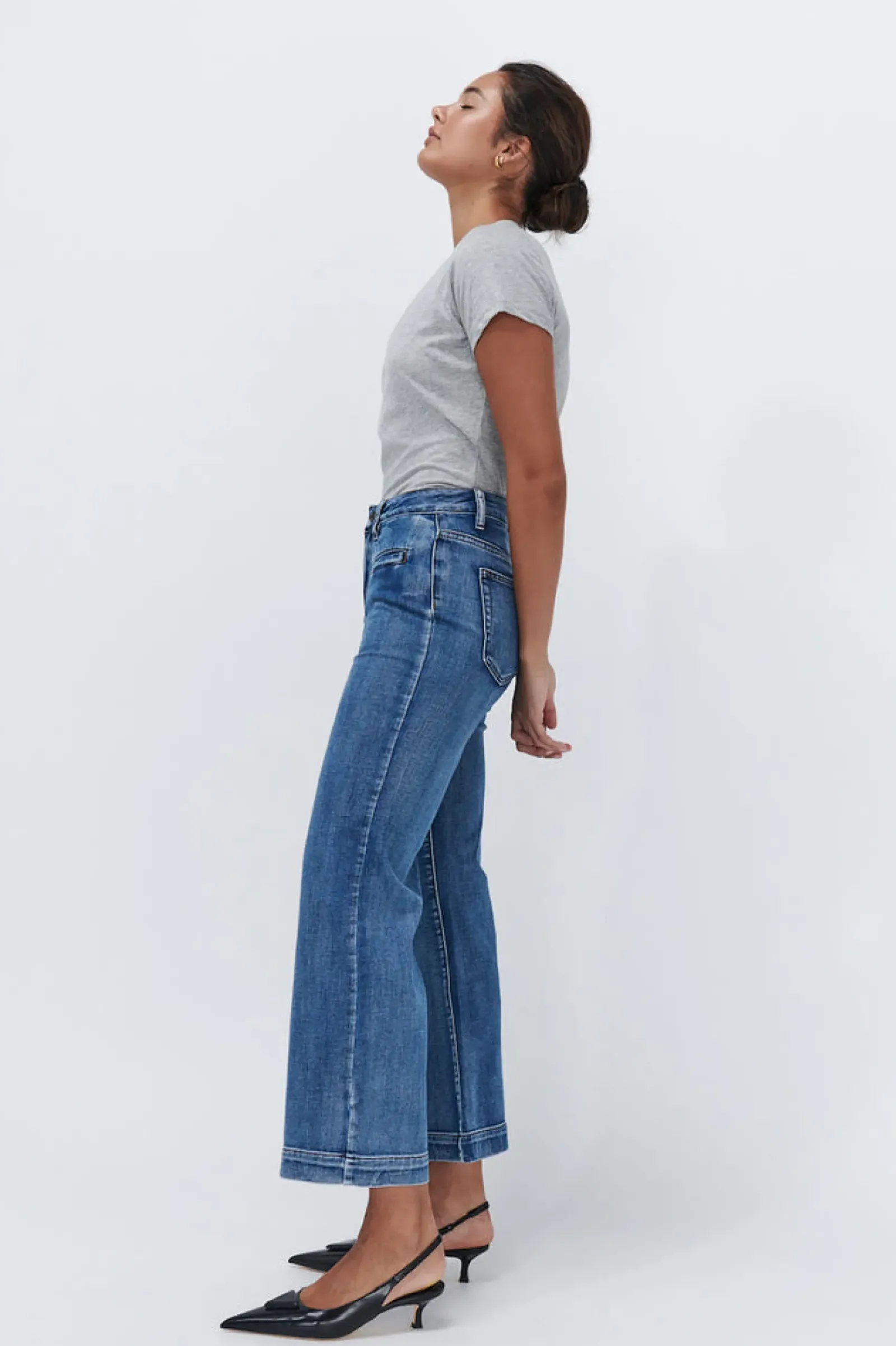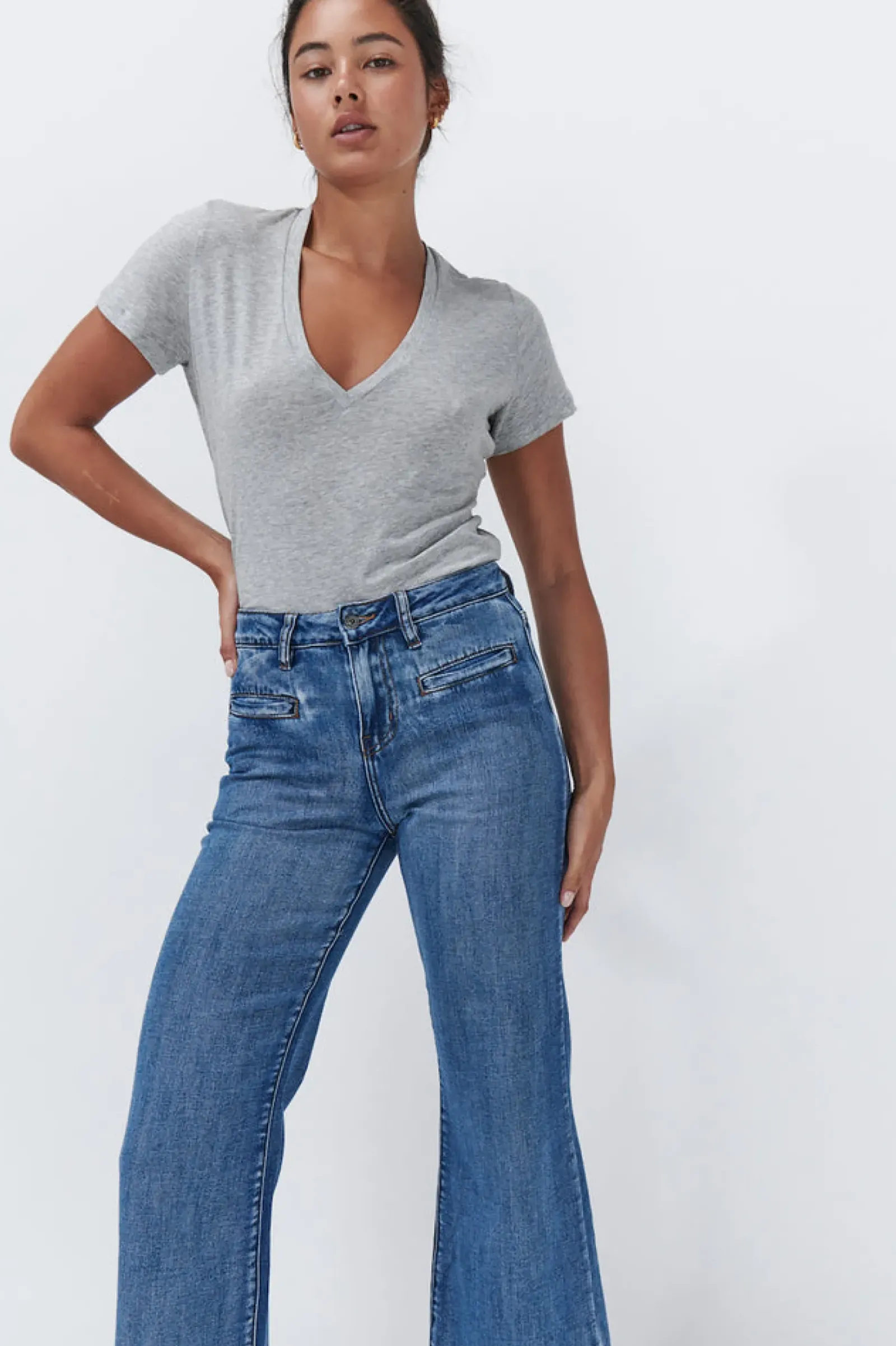 Channel chic 70’s style. A modern twist on the classic wide-legged jean, the Freya features a mid/high rise that’s fitted at the hips with a relaxed, wide leg that flares at the knee. Works so well with one of our breezy cotton shirts and a pair of boots or sandals.