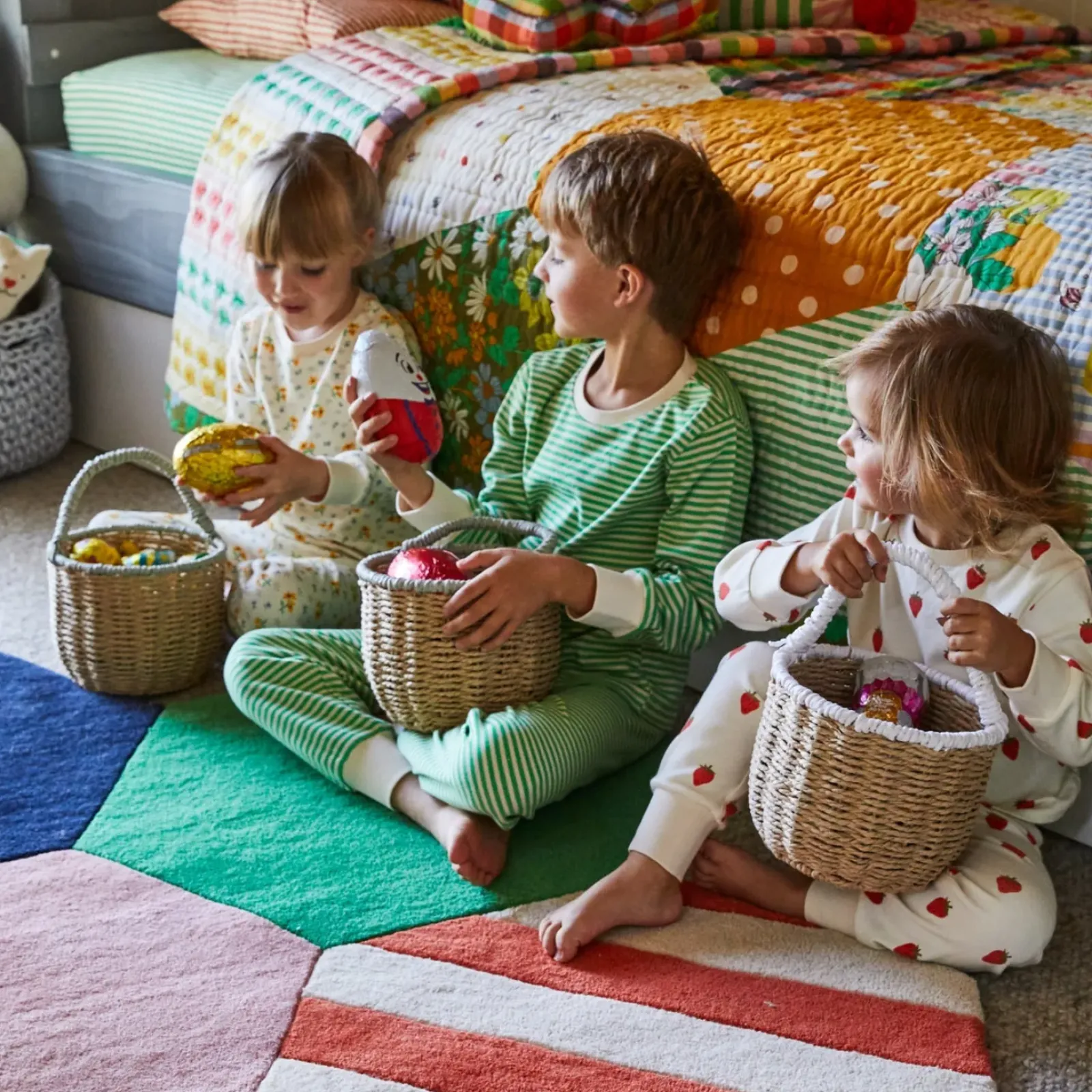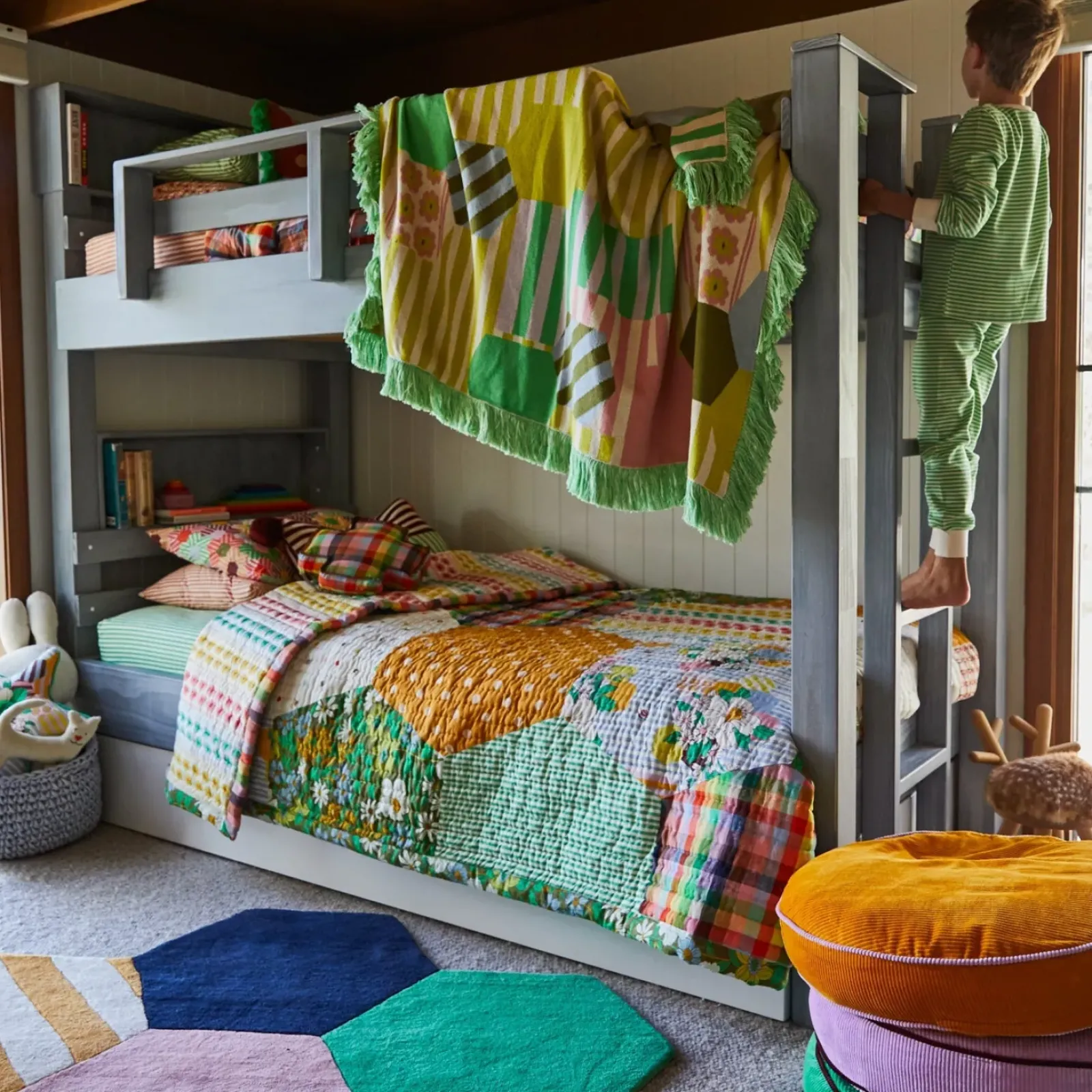 “There’s nothing like an embroidered quilt to remind you of retro eras while keeping things cosy, and this double-sided design is the gift that keeps on giving. Embrace a vibrant patchwork of florals, stripes, gingham, and polka dots. Or, keep it simple with the other side – equally colourful yet considerably more calm. Whichever you choose, your child’s room will be anything but dull.”– Phoebe’s Style Notes