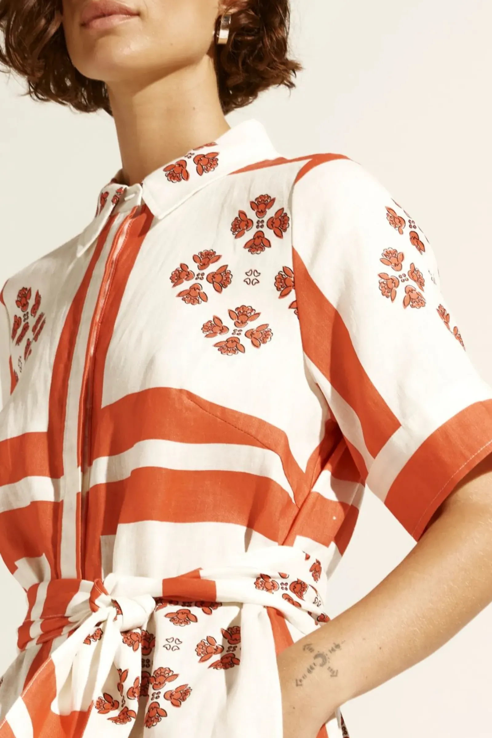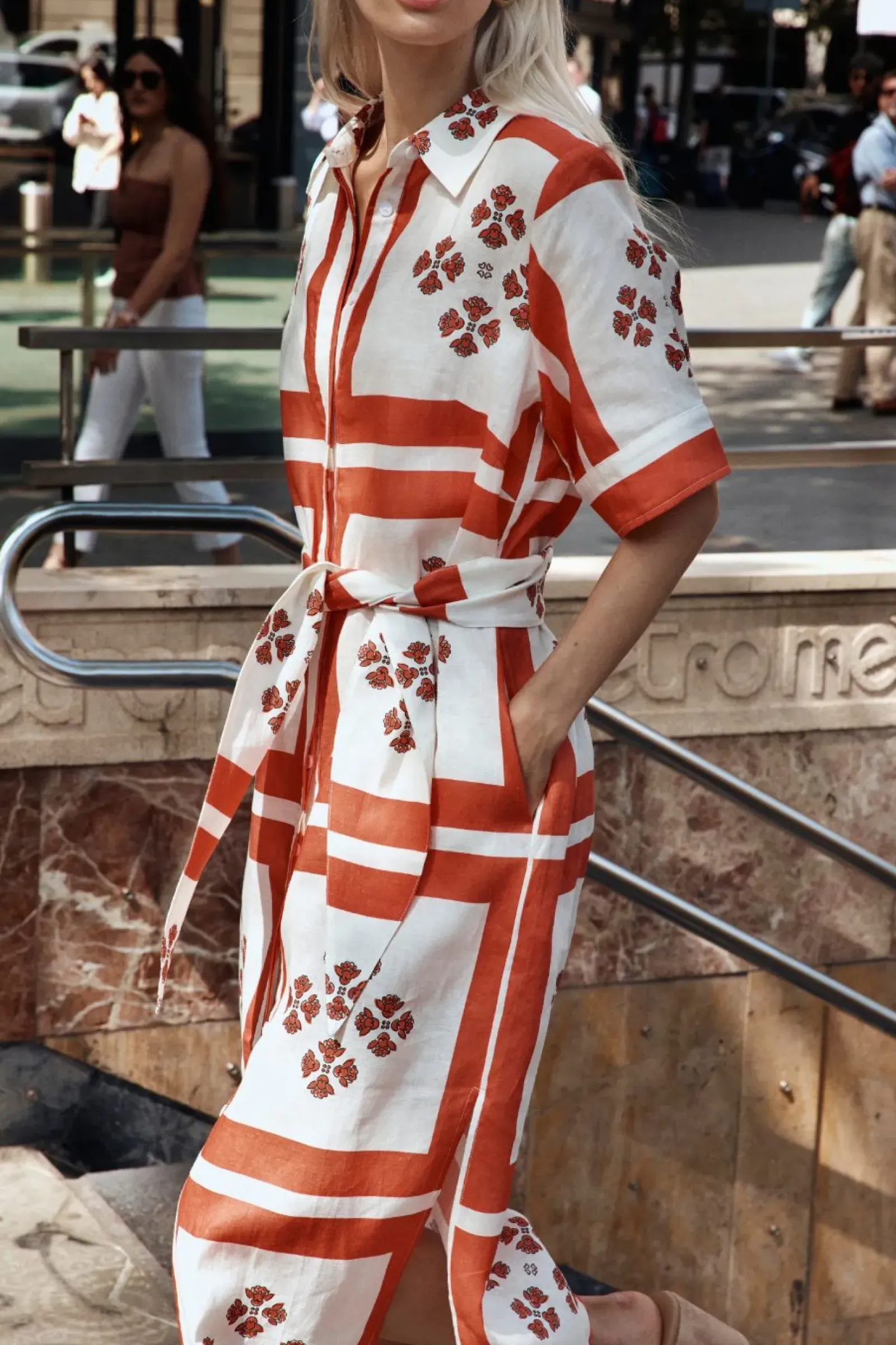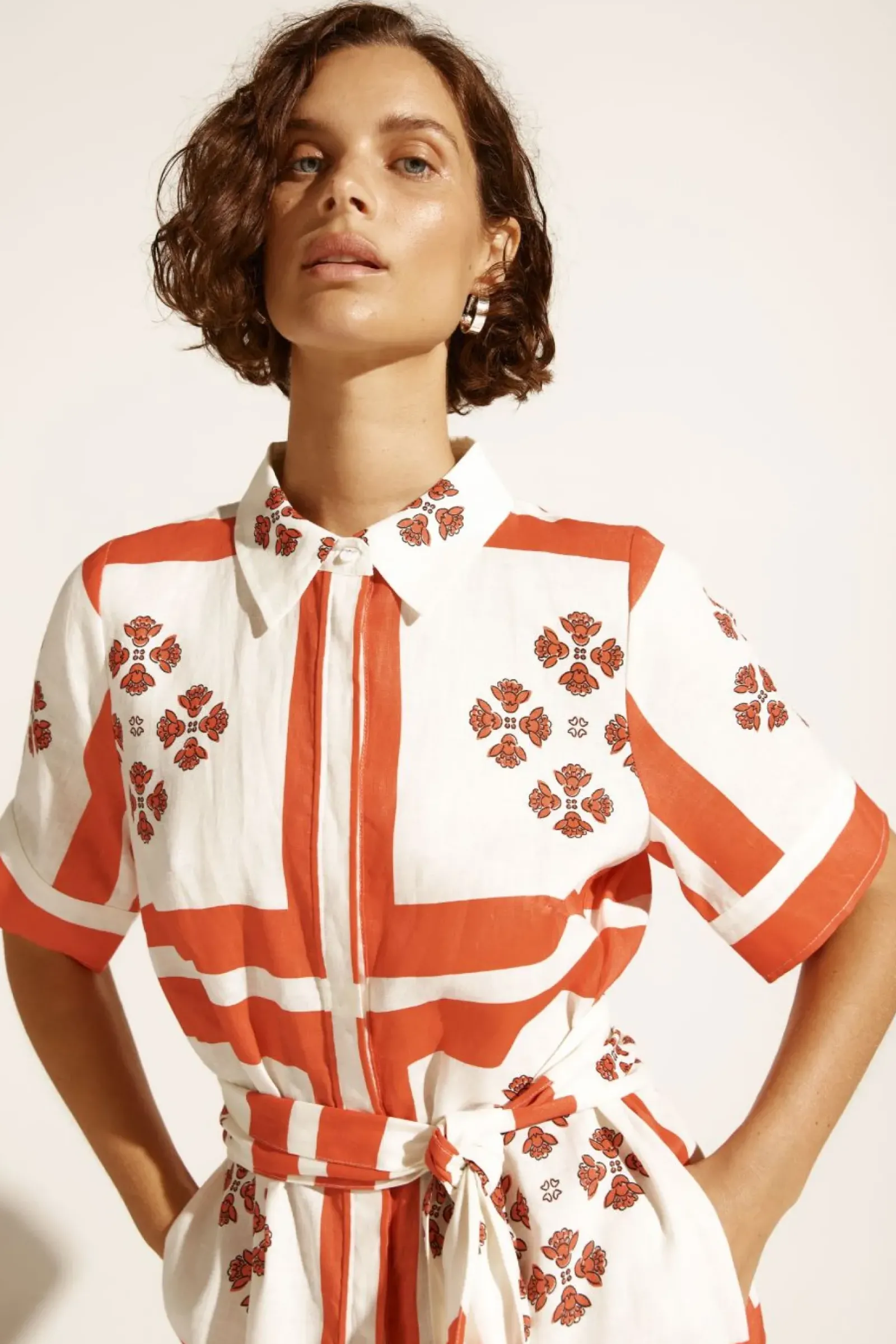 This shirt dress has both personality and style. crafted in our signature tamarillo scarf print, it offers a nod to the festive season. a covered placket and side splits ensure this piece is clean and contemporary.